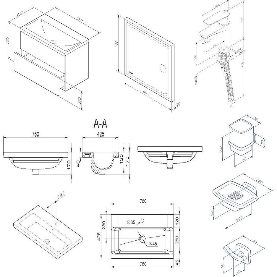 База под раковину, подвесная, 75 см
