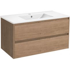 Тумба подвесная Vincea Luka 100 см с раковиной VCB-13100B, система хранения: 2 выкатных ящика soft close, цвет - дуб табак.