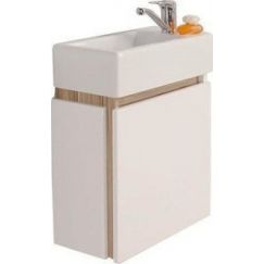 Тумба подвесная Акватон Флай 60 с раковиной Миранда 60 см, цвет - белый глянец/дуб крафт.