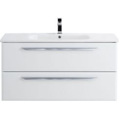 Тумба подвесная Cezares ECO-CER-N-1000-2C-1A-SO-BL-R с раковиной CZR-8095-100-R, размер 1000x460x516 мм, цвет bianco lucido. Ручки приобретаются отдельно.