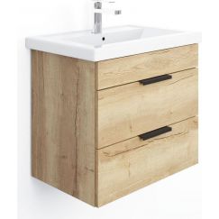 Тумба подвесная Onika Легран 70 см с раковиной Kirovit Фостер 70, 2 выдвижных ящика с доводчиками, цвет дуб галифакс.