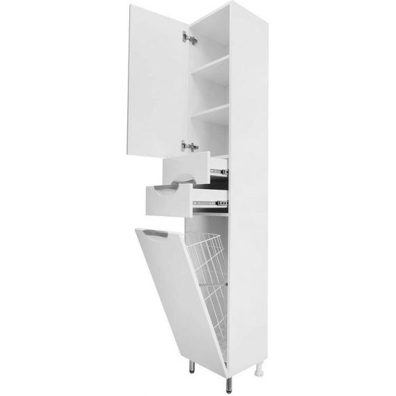 Пенал напольный Стиль 350х1980х330 мм, левый, с бельевой корзиной, цвет белый.
