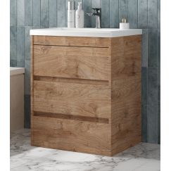 Тумба напольная Aqwella Fargo 60 см с раковиной Фостер 60 см, с двумя ящиками, оснащенными скрытыми направляющими австрийской фирмы Blum с системой мягкого закрывания, цвет дуб балтийский.