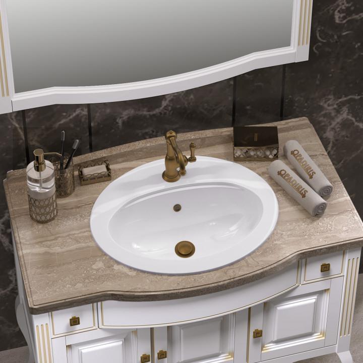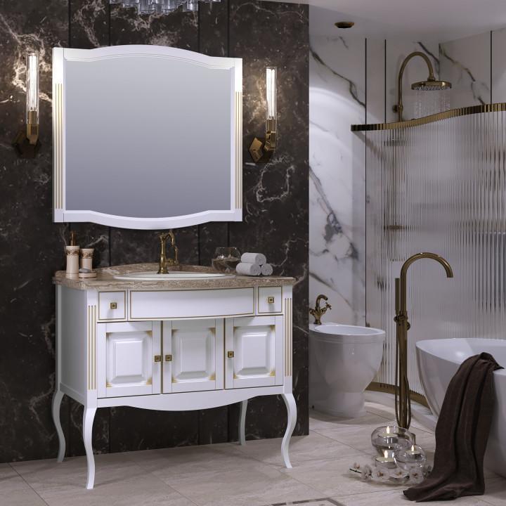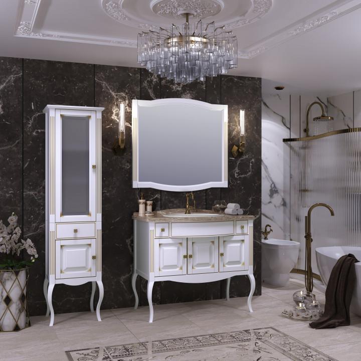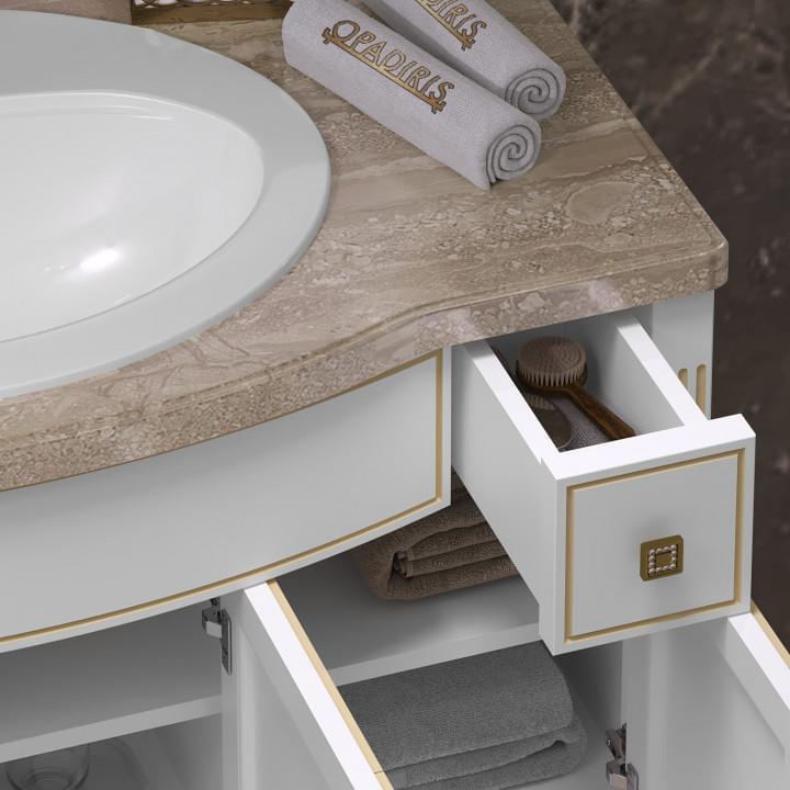 Тумба напольная Opadiris Лаура 100 см с раковиной Creavit 58 см и мраморной столешницей, цвет белый матовый/бежевая патина/swarovski золото.