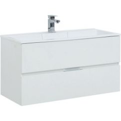 Тумба подвесная Aquanet Бруклин 100 см с раковиной Sanovit 100 Slim Synergy, 2 выдвижных ящика, цвет белый.