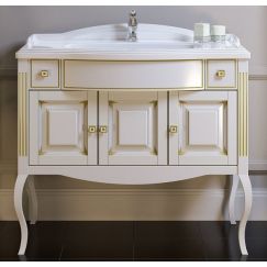 Тумба напольная с раковиной (Лаура 120 см), цвет белый матовый/бежевая патина/swarovski золото.