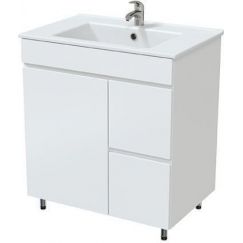 Тумба напольная Loranto Ирис 80 см с раковиной Teo 80, цвет белый.
