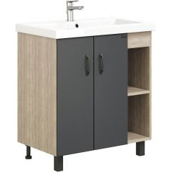 Тумба напольная Onika Тимбер 80 см с раковиной Cersanit Como 80, цвет серый матовый/дуб сонома.