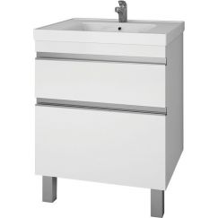 Тумба напольная Dreja Grace Plus 60 см с раковиной Grace 60 см, 2 ящика, с опорами, цвет белый глянец.