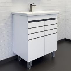Каркас напольный Cezares Cadro 80 см с керамической раковиной Tecla Touch и двумя вставками белого цвета.