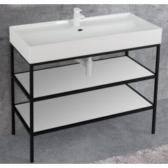 Каркас напольный Cezares Cadro 100 см с керамической раковиной Tecla Touch и двумя вставками черного цвета.