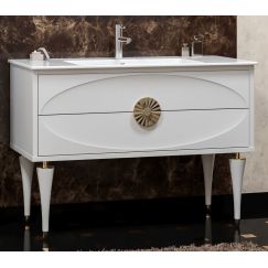 Тумба напольная Smile Ибица 120 с раковиной Ibiza 121, 2 ящика, ножки и ручки из массива бука, цвет белый глянец/золото.