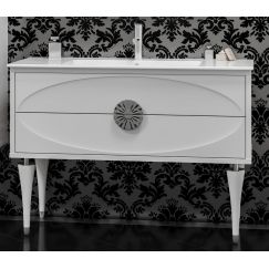 Тумба напольная Smile Ибица 120 с раковиной Ibiza 121, 2 ящика, ножки и ручки из массива бука, цвет белый глянец/хром.