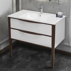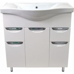 Тумба напольная Smile Ибица 90 с раковиной Ibiza 91, 2 ящика, ножки и ручки из массива бука, цвет белый глянец/хром.