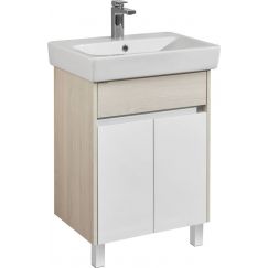 Тумба напольная Акватон Йорк 55 см с раковиной Тигода 55, цвет белый/ясень фабрик.