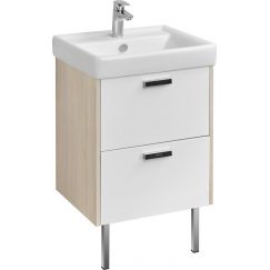 Тумба напольная Акватон Бекка 50 см с раковиной смайл 50, цвет белый глянцевый/дуб сомерсет.