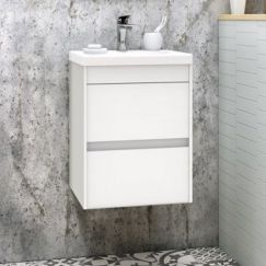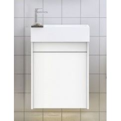 Тумба подвесная Art&Max Family 40 см с раковиной AM-LAV-400-MR-Mini, 1 распашная дверца, петли Боярд с доводчиками, цвет белый глянец.