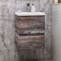 Тумба подвесная Art&Max Family 40 см с раковиной AM-LAV-400-MR-Mini, с распашной дверцей, цвет дуб харбор золотой.