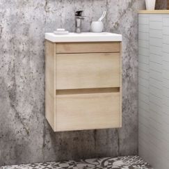 Тумба подвесная Art&Max Family 40 см с раковиной AM-LAV-400-MR-Mini, 1 распашная дверца, петли Боярд с доводчиками, цвет сканди.