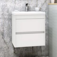 Тумба подвесная Art&Max Platino 58 см с раковиной AM-LAV-580-MR-A, 2 выдвижных ящика, направляющие скрытого монтажа, с доводчиками, цвет белый матовый.