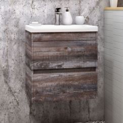 Тумба подвесная Art&Max Techno 60 см с раковиной Грэйс 60 641587, 2 выдвижных ящика, направляющие скрытого монтажа Боярд, не полного выдвижения с доводчиком, цвет дуб бомонд лофт.