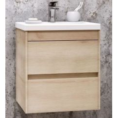 Тумба подвесная Art&Max Family 58 см с раковиной AM-LAV-580-MR-A, 2 выдвижных ящика, направляющие скрытого монтажа Боярд, полного выдвижения с доводчиками, цвет сканди.