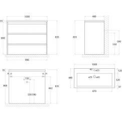 Тумба подвесная Art&Max Platino 100 см с раковиной AM7110-90, с 2 выдвижными ящиками, цвет серый матовый.