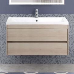 Тумба подвесная Art&Max Family 100 см с раковиной AM-LAV-1000-MR-A, 2 выдвижных ящика, направляющие скрытого монтажа Боярд, полного выдвижения с доводчиками, цвет сканди.