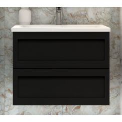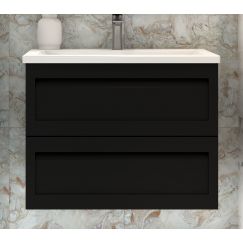 Тумба подвесная Art&Max Platino 75 см с раковиной AM-LAV-750-MR-A, 2 выдвижных ящика, направляющие скрытого монтажа, с доводчиками, цвет черный матовый.