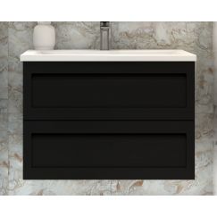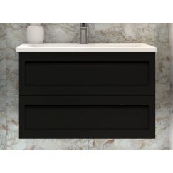 Тумба подвесная Art&Max Platino 80 см с раковиной AM7117-80, с 2 выдвижными ящиками, цвет чёрный матовый.