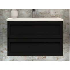 Тумба подвесная Art&Max Platino 90 см с раковиной AM-LAV-900-MR-A, 2 выдвижных ящика, направляющие скрытого монтажа, с доводчиками, цвет черный матовый.