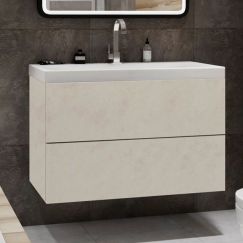 Тумба подвесная Art&Max Techno 90 см с раковиной Грэйс 90 641617, 2 выдвижных ящика, направляющие скрытого монтажа Боярд, не полного выдвижения с доводчиком, цвет бетон лофт натуральный.