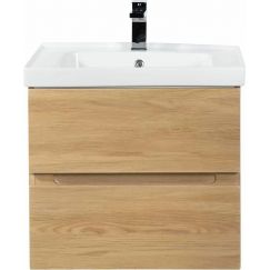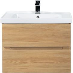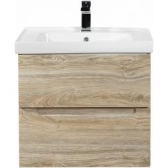 Тумба подвесная Art&Max Techno 60 см с раковиной Грэйс 60 641587, 2 выдвижных ящика, направляющие скрытого монтажа Боярд, не полного выдвижения с доводчиком, цвет сосна.