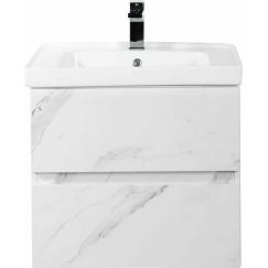 Тумба подвесная Art&Max Techno 60 см с раковиной Грэйс 60 641587, 2 выдвижных ящика, направляющие скрытого монтажа Боярд, не полного выдвижения с доводчиком, цвет монти мрамор.