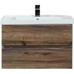 Тумба подвесная Art&Max Torino 80 см с раковиной AM7110-80, 2 выдвижных ящика, направляющие скрытого монтажа, с доводчиками, цвет бран.
