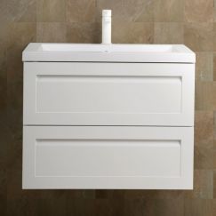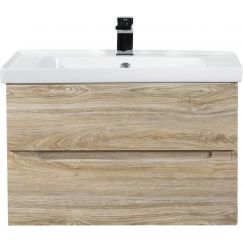 Тумба подвесная Art&Max Family 75 см с раковиной AM-LAV-750-MR-A, 2 выдвижных ящика, направляющие скрытого монтажа Боярд, полного выдвижения с доводчиками, цвет сканди.