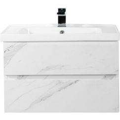 Тумба подвесная Art&Max Techno 90 см с раковиной Грэйс 90 641617, 2 выдвижных ящика, направляющие скрытого монтажа Боярд, не полного выдвижения с доводчиком, цвет монти мрамор.