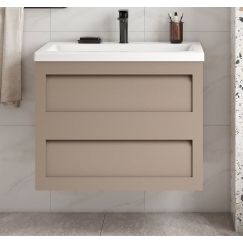 Тумба подвесная Art&Max Techno 70 см с раковиной Грэйс 70 641600, 2 выдвижных ящика, направляющие скрытого монтажа Боярд, не полного выдвижения с доводчиком, цвет айс какао.