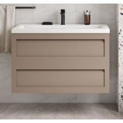 Тумба подвесная Art&Max Platino 90 см с раковиной AM-LAV-900-MR-A, 2 выдвижных ящика, направляющие скрытого монтажа, с доводчиками, цвет капучино матовый.