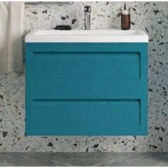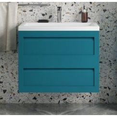 Тумба подвесная Art&Max Torino 80 см с раковиной AM7110-80, 2 выдвижных ящика, направляющие скрытого монтажа, с доводчиками, цвет сапфир.