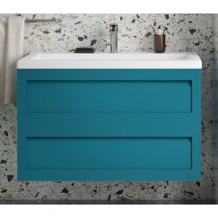 Тумба подвесная Art&Max Platino 90 см с раковиной AM-LAV-900-MR-A, 2 выдвижных ящика, направляющие скрытого монтажа, с доводчиками, цвет бирюзовый матовый.