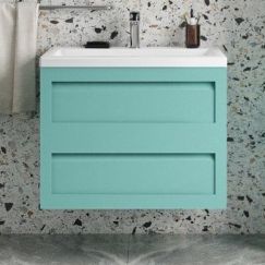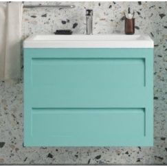 Тумба подвесная Art&Max Platino 75 см с раковиной AM-LAV-750-MR-A, 2 выдвижных ящика, направляющие скрытого монтажа, с доводчиками, цвет бирюзовый матовый.