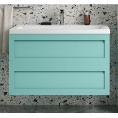 Тумба подвесная Art&Max Platino 100 см с раковиной AM-LAV-1000-MR-A, 2 выдвижных ящика, направляющие скрытого монтажа, с доводчиками, цвет бирюзовый матовый.