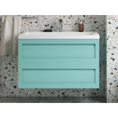 Тумба подвесная Art&Max Platino 100 см с раковиной AM-LAV-1000-MR-A, 2 выдвижных ящика, направляющие скрытого монтажа, с доводчиками, цвет светло-зелёный матовый.