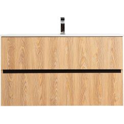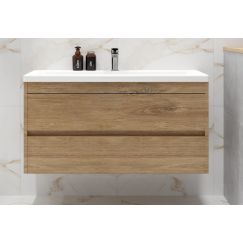 Тумба подвесная Art&Max Family 100 см с раковиной AM-LAV-1000-MR-A, 2 выдвижных ящика, цвет дуб харбор золотой.