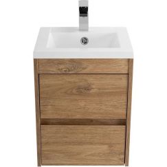 Тумба подвесная Art&Max Family 40 см с раковиной AM-LAV-400-MR-A, 2 выдвижных ящика, цвет Дуб харбор золотой.