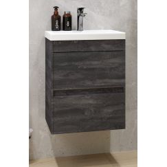 Тумба подвесная Art&Max Family 50 см с раковиной AM-LAV-500-MR-A, 2 выдвижных ящика, направляющие скрытого монтажа Боярд, полного выдвижения с доводчиками, цвет бетон экзотик.