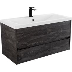 Тумба подвесная Art&Max Family 100 см с раковиной AM-LAV-1000-MR-A, 2 выдвижных ящика, цвет железный камень.