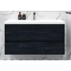 Тумба подвесная Art&Max Platino 100 см с раковиной AM7110-90, с 2 выдвижными ящиками, цвет чёрный матовый.