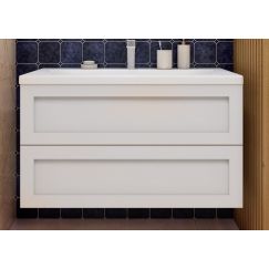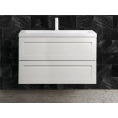 Тумба подвесная Art&Max Platino 100 см с раковиной AM-LAV-1000-MR-A, 2 выдвижных ящика, направляющие скрытого монтажа, с доводчиками, цвет белый матовый.